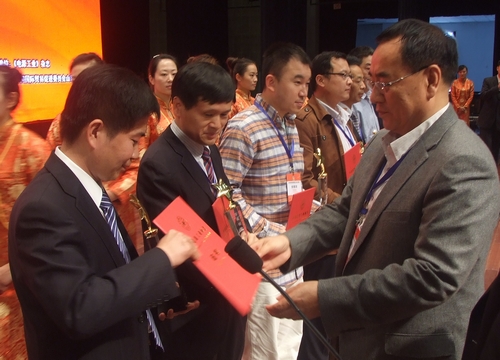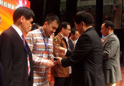 工信部節能與綜合利用司資源綜合利用處處長黃健忠、棗莊市政府副市長張兵向獲得十大科技創新獎及十大管理創新獎的企業或企業家頒獎。